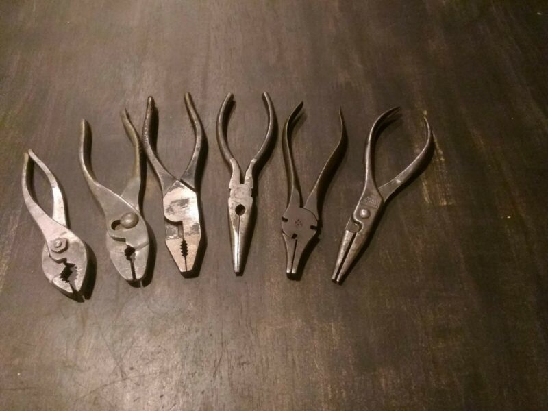 Vintage Lot of 6 Pliers ~ Duck Bill, Needle Nose, Slip Joint, etc. ~ALL UNMARKED