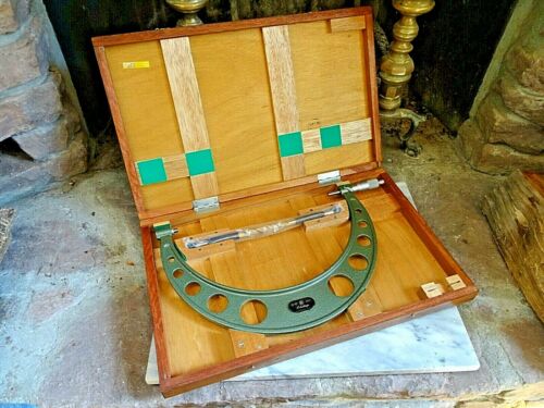 Title (ebay affiliate link): MITUTOYO MICROMETER CALIPER 103-189 12-13" w/Wood Case Ratchet Lock