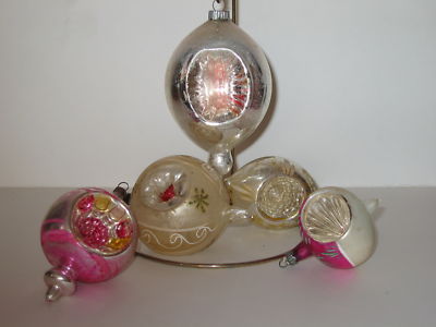 RARE C1900~LOT FIVE INDENT XMAS TREE ORNAMENTS