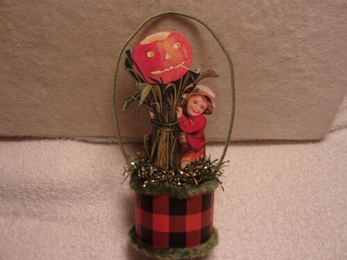 Title (ebay affiliate link): Antique Look HALLOWEEN Ornament, BOY-Jack-O-Lantern SCRAP, Tinsel, Handmade