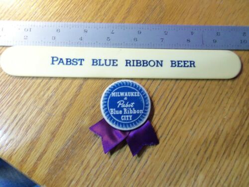 ANTIQUE VINTAGE CELLULOID ADVERTISING PINBACK & BEER FOAM SCRAPER PABST BLUE RIB