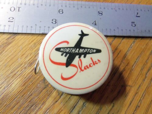 Title (ebay affiliate link): ANTIQUE VINTAGE CELLULOID ADVERTISING TAPEMEASURE NORTH HAAMPTON SLACKS AIRPLANE