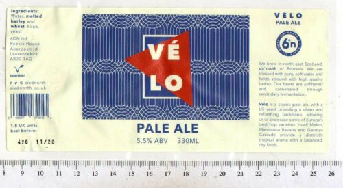 Title (ebay affiliate link): UK Beer Label - 6 Degrees North Brewery - Scotland - Velo Pale Ale