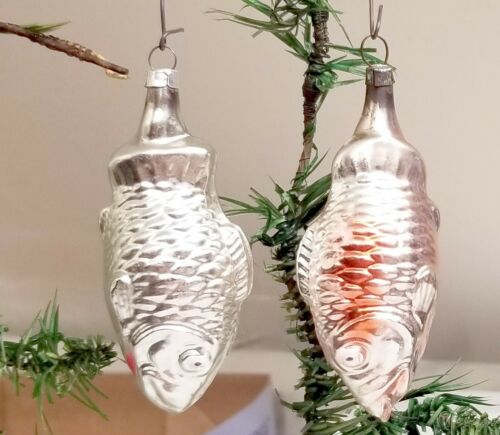 Title (ebay affiliate link): Pale Blue Fish. Rose Colored Fish. Two smaller 1930s German Glass Ornaments