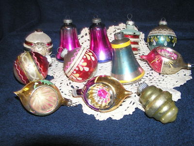 Title (ebay affiliate link): VINTAGE LOT 12 CHRISTMAS GLASS ORNAMENTS BULBS BELLS