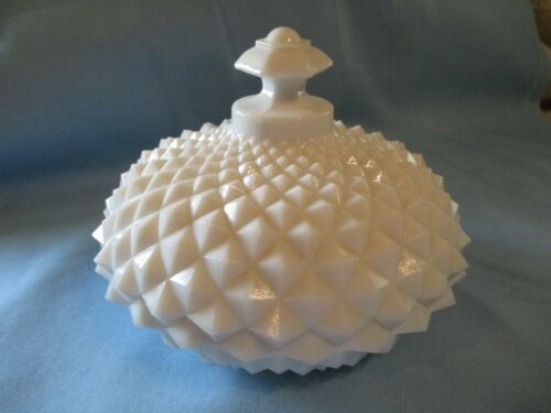 Title (ebay affiliate link): Vintage Westmoreland Diamond Point Sawtooth White Milk Glass Candy Dish w Lid