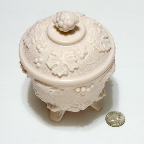 Vintage Jeanette Candy Dish Shell Pink Milk Glass Footed 2 Piece Grapes & Leaves