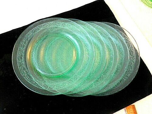 5 Green Glass Luncheon Plates 8" Leaf pattern