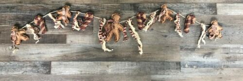 Primitive Christmas Garland Gingerbread Candy Cane Garland Handmade OOAK