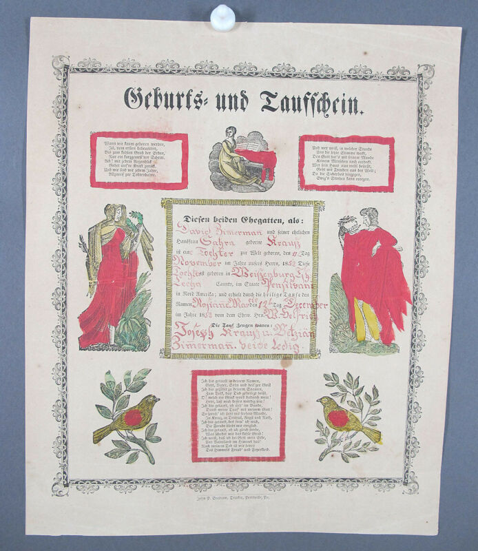 Title (ebay affiliate link): Antique 1852 Pennsylvania Dutch German Folk Art Fraktur David Zimerman yqz