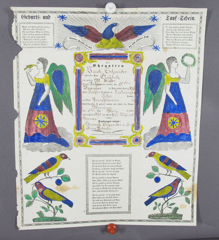 Title (ebay affiliate link): Antique 1856 Pennsylvania Dutch German Folk Art Fraktur Jacob Schneider yqz
