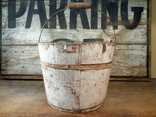 Title (ebay affiliate link): AAFA Painted Shaker Swing Handle Bucket Antique Wood Pail Old Oyster White Paint