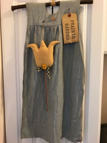 Primitive Dress Decor Vintage Blue Wool Yellow Tulip Flower Prairie Garden Tag