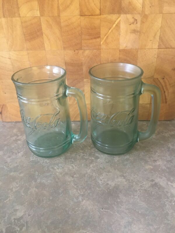 Title (ebay affiliate link): (2) Coca-Cola Vintage Green Glass Stein Mug w Handle Coke 16 Ounces