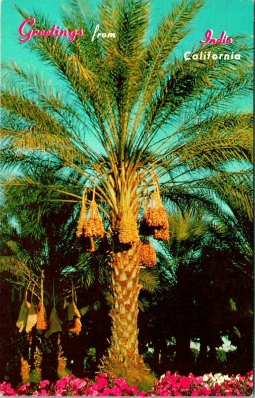 C40-3784, DATE PALMS, INDIO, CA. Postcard.