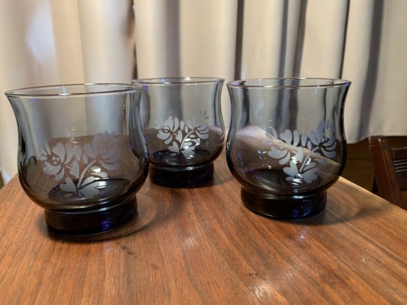 Pfaltzgraff Yorktowne Blue 8 oz Three (3)Glasses 3 1/2" Juice Milk Etched USA