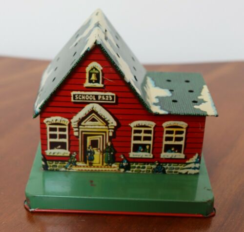 VINTAGE METAL TIN LOLLIPOP BANK "SCHOOL P.S. 23" ~ GREAT COLOR AND DETAIL