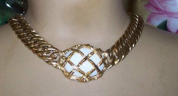 Title (ebay affiliate link): VTG Estate Chunky Statement pc Monet Choker Milk glass Necklace earrings