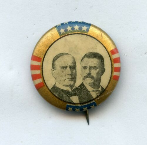 Title (ebay affiliate link): William Mckinley & Theodore Roosevelt Political pin pinback button 7/8" 6