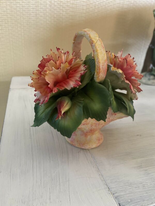 CAPODIMONTE PORCELAIN BASKET OF FLOWERS MADE IN ITALY