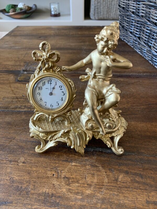 Title (ebay affiliate link): ANTIQUE NEW HAVEN DESK MANTEL CLOCK ART NOUVEAU Bronzed METAL