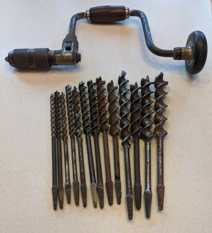 Title (ebay affiliate link): Vintage MILLERS FALLS #732 Holdall 10" Swing Brace + Set of 13 Ass''t Auger Bits