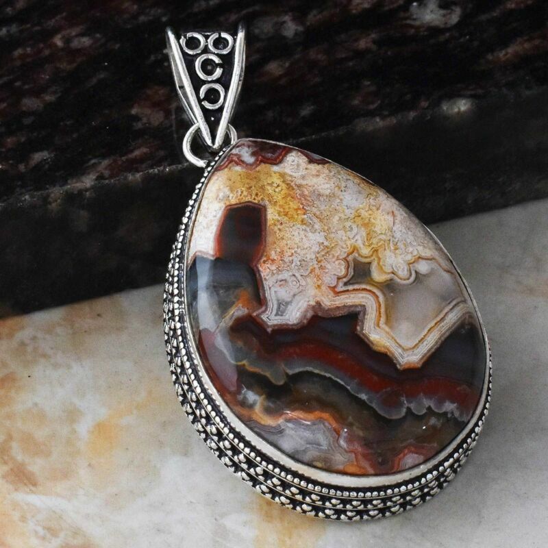 Title (ebay affiliate link): Crazy Lace Agate Ethnic Jewelry Handmade Antique Design Pendant 2.32" AP 25228