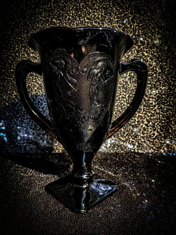 Title (ebay affiliate link): Vintage Black Amethyst Depression Glass Pedestal Vase Trophy