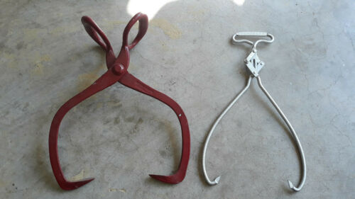 Vintage Antique Set of 2 Ice Block Tongs Gifford Wood Co and Carolina Creamery