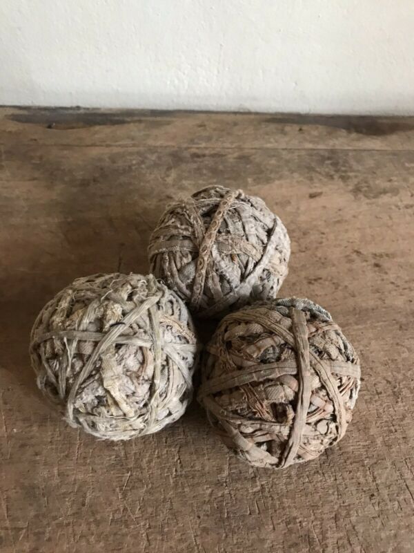 Title (ebay affiliate link): 3 Old Antique Light Brown Calico Rag Rug Rag Balls Handmade Country Textile AAFA