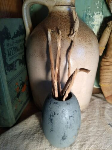 Title (ebay affiliate link): PRIMITIVE 100 YEAR OLD RUSH in PAINTED WOODEN VESSEL EARLY LIGHTING
