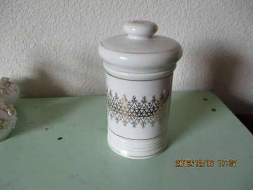 VINTAGE WHITE PORCELAIN APOTHECARY JAR PAPER LABEL READS: NAS????