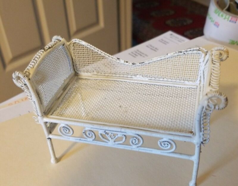 Title (ebay affiliate link): Vintage White Minature Wicker Doll House Furniture Loveseat made of metal