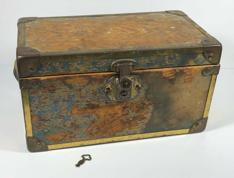 Title (ebay affiliate link): Small Antique Metal and Wood Trunk with Key and Inside Tray