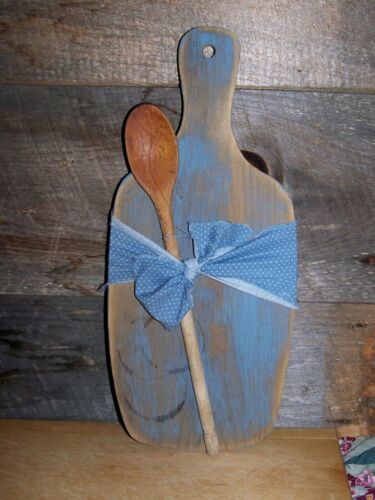 Title (ebay affiliate link): Primitive Vintage Painted Wood Paddle Cutting Board & Old Worn Spoon