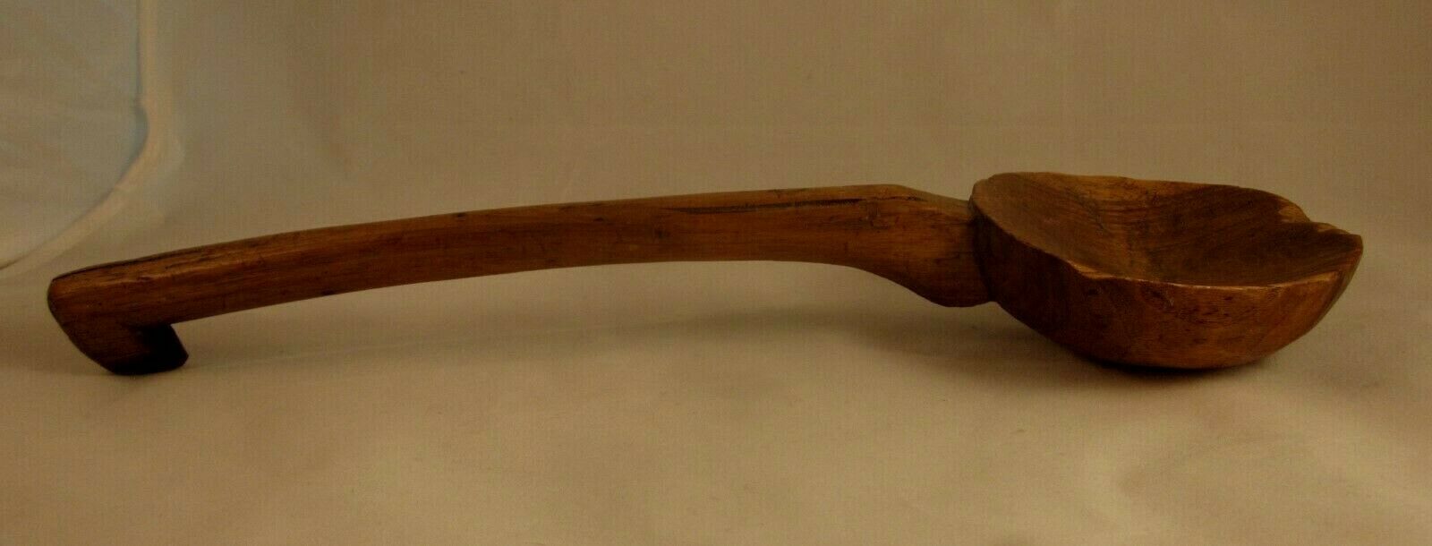 Title (ebay affiliate link): Antique Wooden SCOOP Ladle 14" Long SPOON Hand Carved Primitive Treen Hook #2