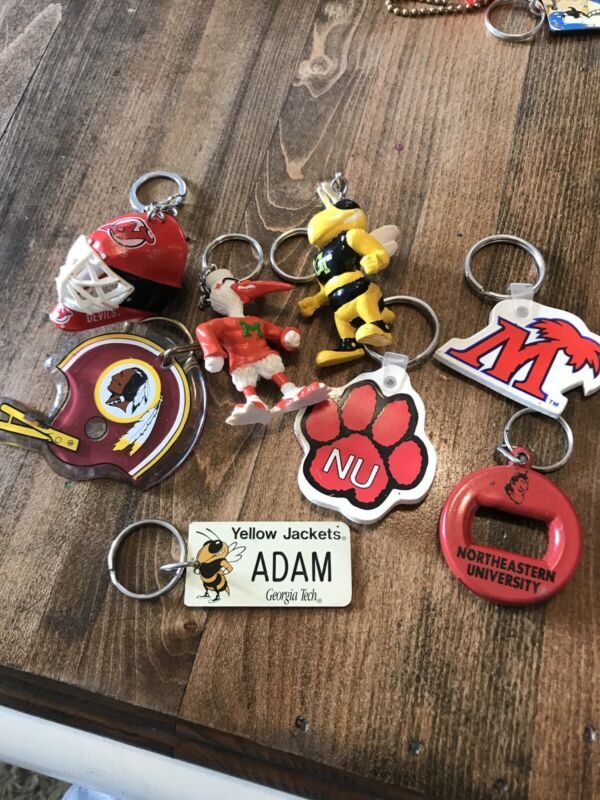 Title (ebay affiliate link): Lot 8 Vtg 90s Sports Key Chains GT Miami Redskins NJ Devils NU Georgia