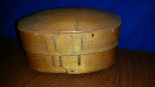 Title (ebay affiliate link): Antique SHAKER or Norwegian RARE Pantry Oval Lunch Box Woven Lace Square Nails