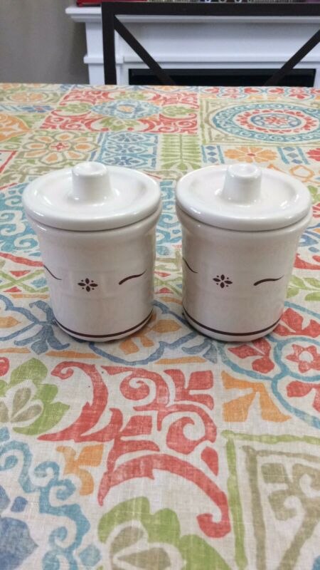 Title (ebay affiliate link): Longaberger Shaker Taker Salt & Pepper Condiment Crocks With Lids