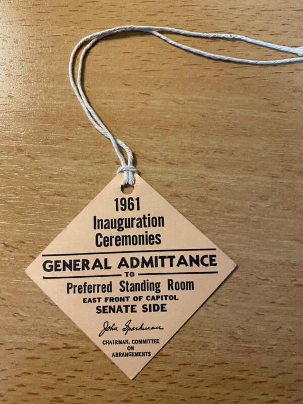 Title (ebay affiliate link): Original 1961 Inauguration Ceremonies General admit. Preferred Standing Rm tag