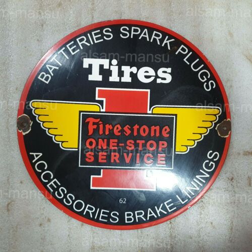 FIRESTONE TIRES 12 INCHES ROUND VINTAGE ENAMEL SIGN