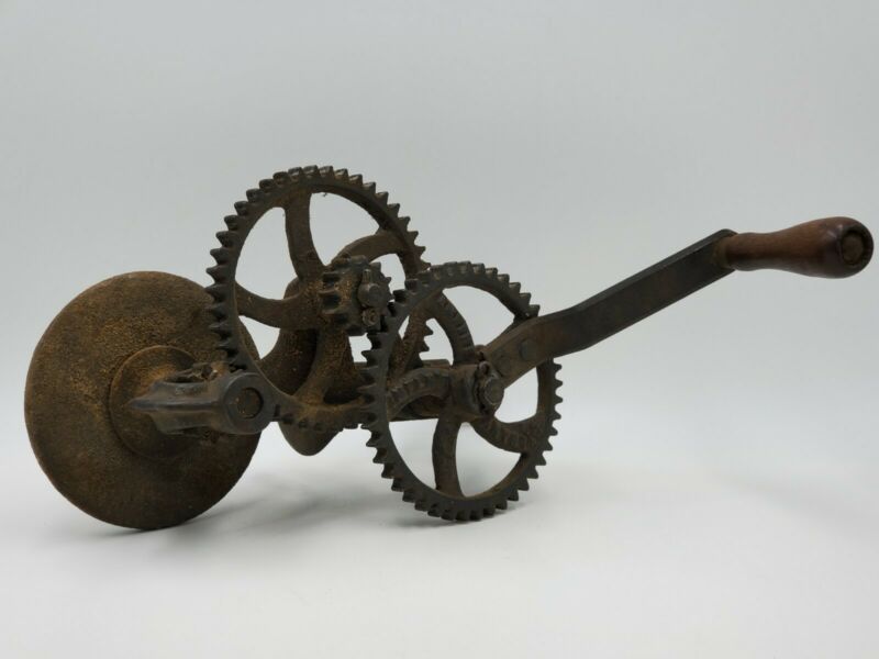 Title (ebay affiliate link): Antique Cast Iron Empire Implement Mfg Open Gear Hand Crank Grinder Albany NY