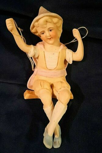 Title (ebay affiliate link): HTF Antique Victorian German Bisque Girl on Swing - Lamp Swinger or Shade Pull