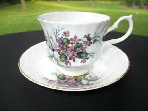 CUP SAUCER BLUEBIRD CANADA FINE BONE CHINA BUNCHES OF PURPLE VIOLETS