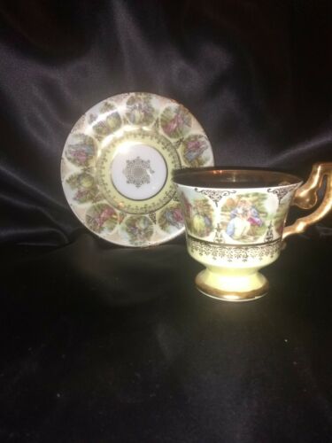 Title (ebay affiliate link): ANTIQUE DEMITASSE DEC MEISSEN DRESDEN GOLD HANDLE INTERIOR PROPOSAL COURTING