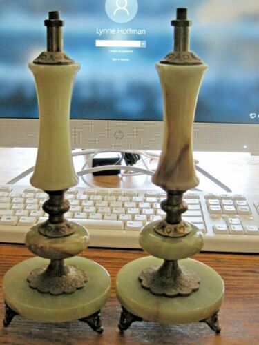 2 Art Deco Vintage Pair Table Lamps Green Agate Marble 11" Tall