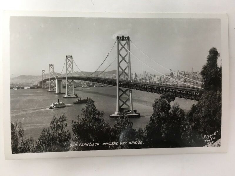 Title (ebay affiliate link): Bay Bridge San Francisco Oakland Real Photo Postcard RPPC Boats Ships Piggott