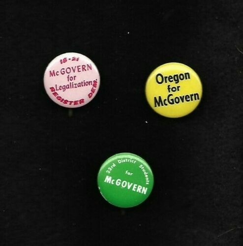 Title (ebay affiliate link): 3 unusual GEORGE MCGOVERN 1972 campaign buttons: Oregon, BRISTOW 23rd Dist.