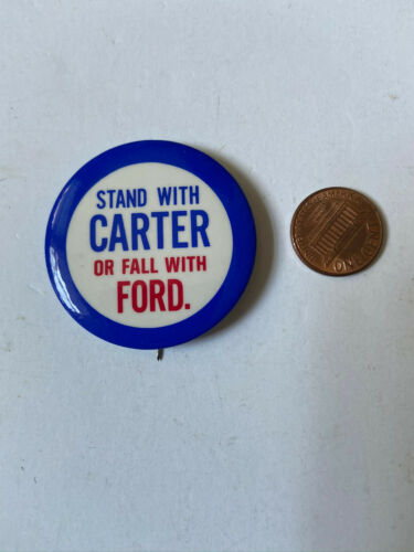 Title (ebay affiliate link): Jimmy Carter for President 1976 campaign button. Anti Gerald Ford