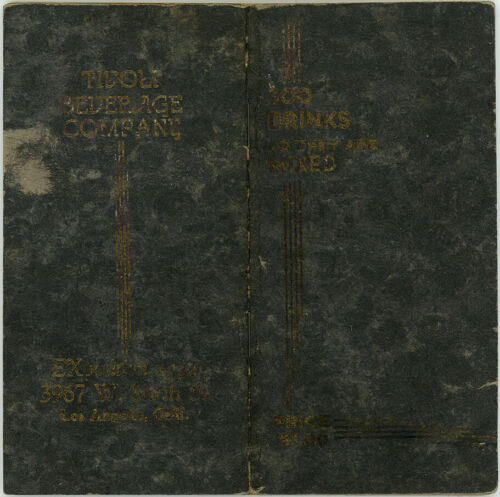 TIVOLI BEVERAGE COMPANY. 1934. 300 Drinks and Cocktails. Whisky, Brandy, Beer